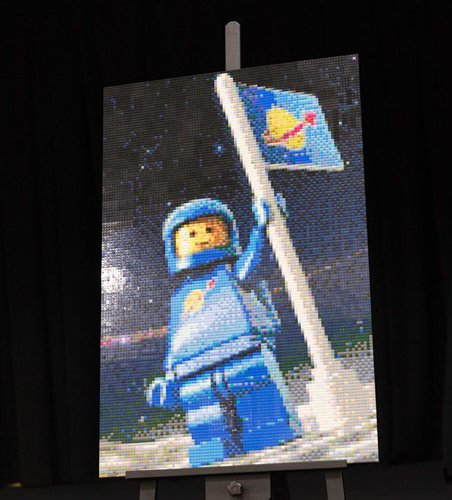 LEGO works of "Benny", which shows an astronomer landing on a small planet, is displayed at the Brick Expo in Canberra, capital of Australia, Aug. 11, 2019. Held in the Hellenic Club of Canberra, the two-day expo showcasing LEGO works attracted many visitors. (Photo by Liu Changchang/Xinhua)