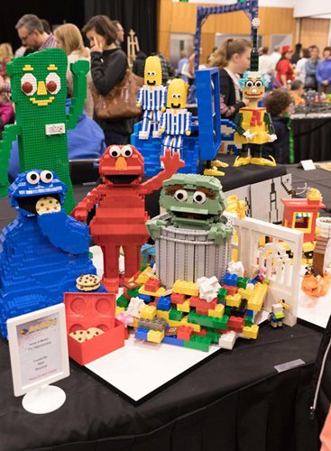LEGO works of "TV Memories" is displayed at the Brick Expo in Canberra, capital of Australia, Aug. 11, 2019. Held in the Hellenic Club of Canberra, the two-day expo showcasing LEGO works attracted many visitors. (Photo by Liu Changchang/Xinhua)