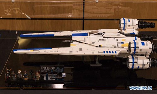 LEGO works themed on Star Wars is displayed at the Brick Expo in Canberra, capital of Australia, Aug. 11, 2019. Held in the Hellenic Club of Canberra, the two-day expo showcasing LEGO works attracted many visitors. (Photo by Liu Changchang/Xinhua)
