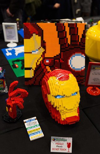 LEGO works of "Iron Man Tribute" is displayed at the Brick Expo in Canberra, capital of Australia, Aug. 11, 2019. Held in the Hellenic Club of Canberra, the two-day expo showcasing LEGO works attracted many visitors. (Photo by Liu Changchang/Xinhua)