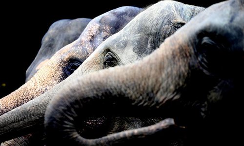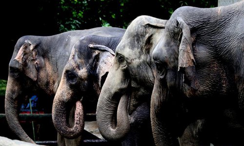 Photo taken on Aug. 12, 2019 shows Asian elephants at the Yangon Zoological Garden in Yangon, Myanmar. The World Elephant Day is marked on Aug. 12 every year, to bring attention to the urgent plight of Asian and African elephants. (Xinhua/U Aung)