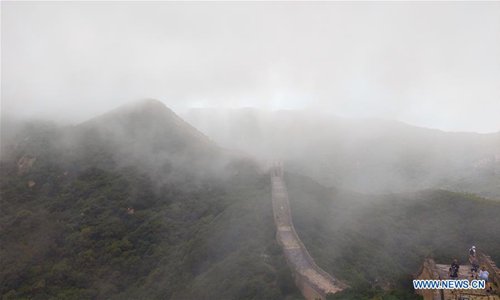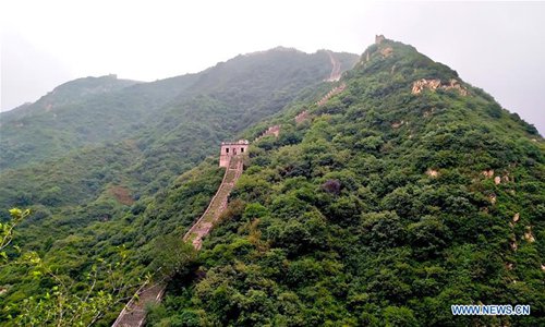 Mobile photo taken on Aug. 10, 2019 shows scenery at the less renovated Badaling Old Great Wall, southwest of the famous Badaling Great Wall, in Beijing, capital of China. (Xinhua/Zhang Chao)