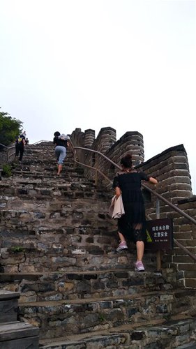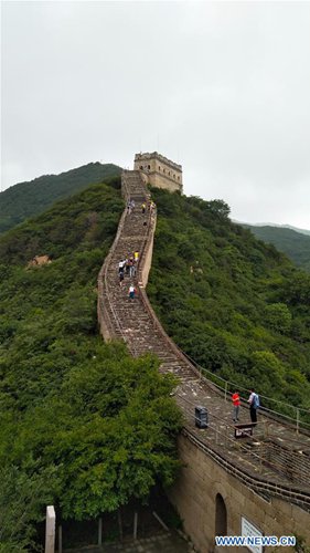 Mobile photo shows people climbing the less renovated Badaling Old Great Wall, southwest of the famous Badaling Great Wall, in Beijing, capital of China, Aug. 10, 2019. (Xinhua/Zhang Chao)