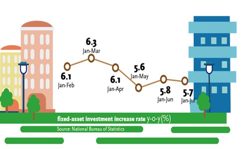 The NBS data showed that investment in the high-tech manufacturing and services industries grew by 11.1 percent and 11.9 percent respectively, year-on-year in the first seven months of 2019, beating average investment growth. Overall, China's fixed-assets investment grew by 5.7 percent from January to July, compared with 5.8 percent in the first six months.