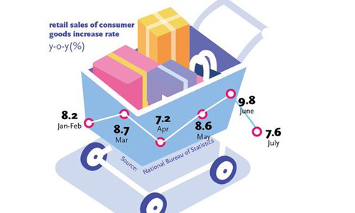 The situation was similar in the consumption sector. In July, the retail sales of consumer goods grew by 7.6 percent on a yearly basis, down from 9.8 percent growth in June. Liu attributed the decline to falling automobile sales.