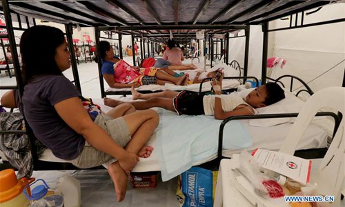 Dengue patients rest at a Dengue Emergency Medical Unit set up by the Philippine Red Cross in Cavite Province, the Philippines, Aug. 13, 2019. On Aug. 6, the Philippines's Department of Health (DOH) declared the dengue outbreak a national epidemic after a surge of dengue cases and deaths in the country. The department has recorded some 146,000 cases of dengue from January through July 20 this year, 98 percent more than the same period in 2018. The outbreak has caused 622 deaths, it added. (Xinhua/Rouelle Umali)