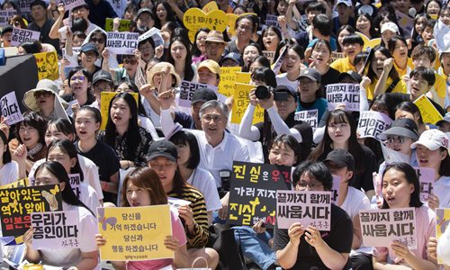 "I have learned that we have no future after forgetting history. I came here because I agree with it ... Abe's apology to comfort women grannies will be an opportunity to stop (confrontational) relations (between South Korea and Japan)," Kim Kyung-hee in her 50s told Xinhua during the Wednesday demonstration.