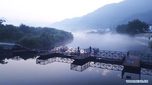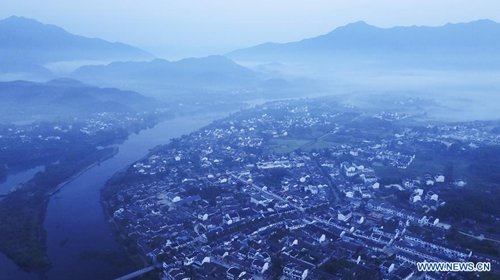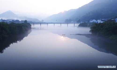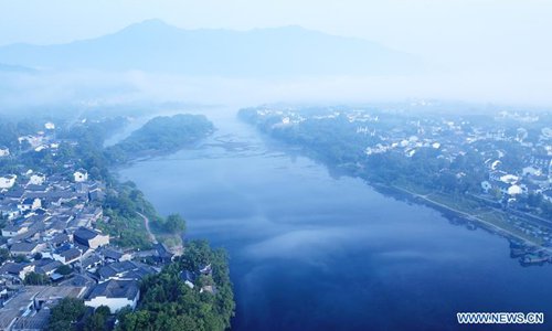 Aerial photo taken on Aug. 15, 2019 shows the scenery of Taohuatan scenic area in Jingxian County of Xuancheng, east China's Anhui Province. (Photo: Xinhua)