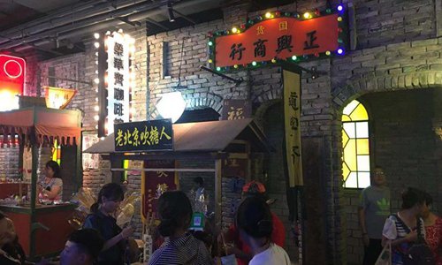 Mobile photo shows food ads at an exhibition about old Beijing at Wangfujing Department Store in Beijing, capital of China, Aug. 17, 2019. (Xinhua/Ma Yan)