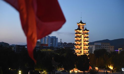 Photo taken on Aug. 17, 2019 shows a night view of Huining County, northwest China's Gansu Province. (Xinhua/Ma Ning)