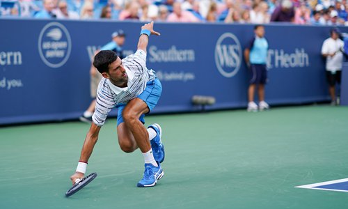 Novak Djokovic returns a shot to Daniil Medvedev at the Cincinnati Masters on Saturday in Mason, Ohio. Photo: VCG