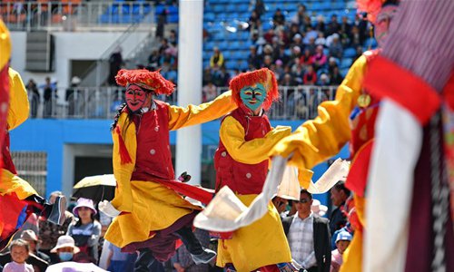 Artists perform Tibetan Opera in cultural festival in Shannan, China's Tibet