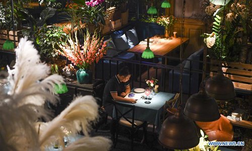 Customers dine at a Western-style restaurant in Jiangbei District of southwest China's Chongqing Municipality, Aug. 16, 2019. More vigor has been poured into Chongqing's evening economy as local authorities improve zoning of night markets, scale up investment on night market branding and facilities, while encouraging consumer spending with night-time leisure activities. (Xinhua/Wang Quanchao)
