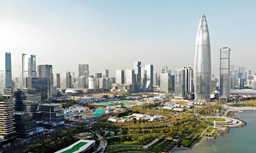 An aerial view of the Shenzhen Bay Super Headquarters Base, a newly developing area in Nanshan district, Shenzhen, South China's Guangdong Province Photo: VCG
