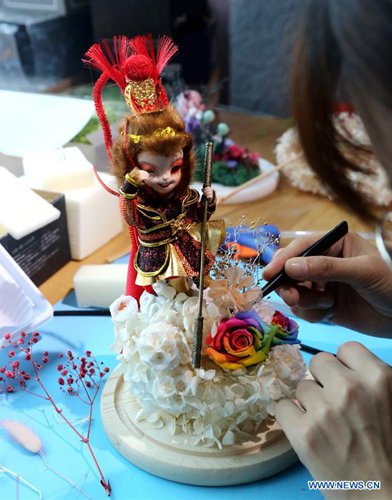 A staff works on the preserved flowers at a workshop in Shijiazhuang, north China's Hebei Province, Aug. 19, 2019. Li Hong has been selling fresh flowers over 10 years and started preserved flowers business since 2018. She introduces elements of Chinese traditional handicrafts into her products to make them more attractive. (Xinhua/Zhao Danhui)