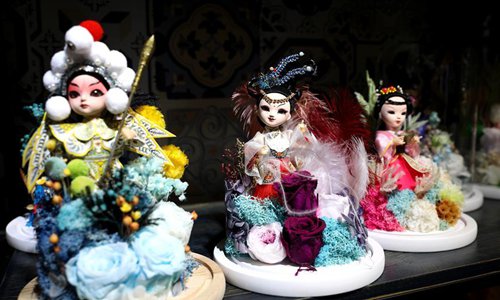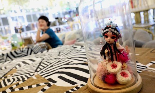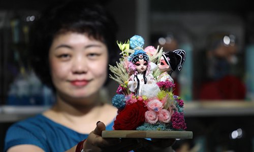 Photo taken on Aug. 19, 2019 shows the preserved flowers products in Shijiazhuang, north China's Hebei Province. Li Hong has been selling fresh flowers over 10 years and started preserved flowers business since 2018. She introduces elements of Chinese traditional handicrafts into her products to make them more attractive. (Xinhua/Zhao Danhui)