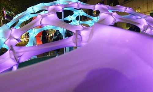 Visitors view light installations at the preview of the Singapore Night Festival held in Singapore on Aug. 21, 2019. (Xinhua/Then Chih Wey)
