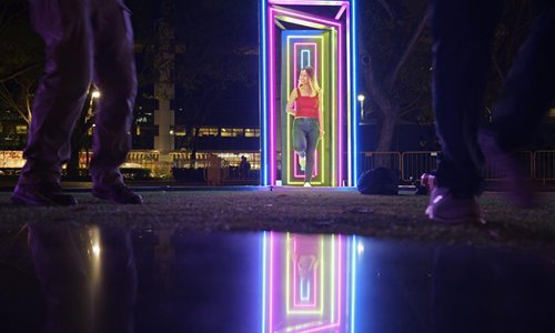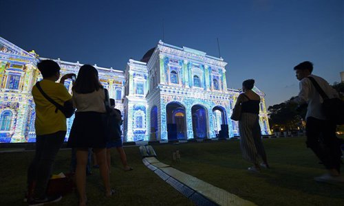 Visitors view light installations at the preview of the Singapore Night Festival held in Singapore on Aug 21, 2019. (Xinhua/Then Chih Wey)