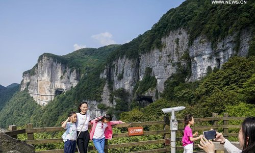 Tourists visit the Gold Buddha Mountain scenic spot in southwest China's Chongqing, Aug. 20, 2019. Photo:Xinhua