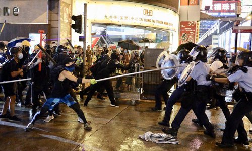 Around 10:00 pm, after clashes between police and protesters in Tsuen Wan, protesters chased police officers along Sha Tsui Road. A video obtained by the Global Times revealed black-clad protesters attacking police officers with batons, sticks, and umbrellas.