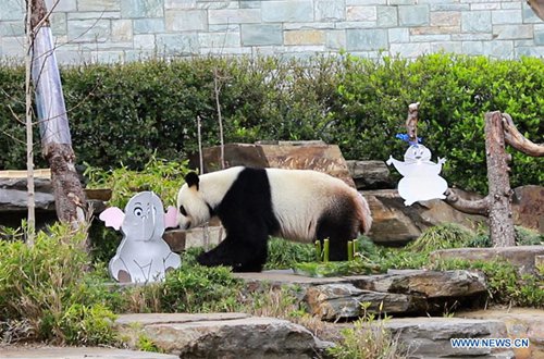 Panda Wang Wang is on its way to the pool during its birthday party in Adelaide Zoo, Adelaide, Australia, on Aug. 25, 2019. The tenth birthday overseas of the two pandas, Wang Wang and Fu Ni, was celebrated Sunday in Adelaide Zoo, the second oldest zoo in Australia, boasting a history of more than 130 years with more than 2,500 animals. (Photo: Xinhua)