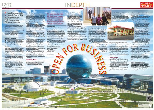 "The promising cooperation areas include construction, automobile and railroads. We have the West China-West Europe railway (cutting through), which is focused on cargo transportation, tourism, and the logistics potential of our country. We've already seen positive steps and positive achievements in this area based on contributions by China and Kazakhstan," Kazakhstan's Vice Minister of Culture and Sport Erlan Kozhagapanov told the Global Times.