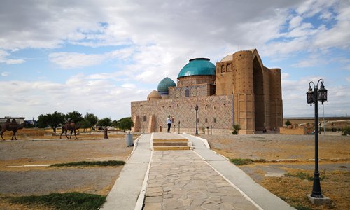 A visitor takes photos at the Mausoleum of Khoja Ahmed Yasawi in southern Kazakhstan on August 15. Photo: Li Qian/GT
