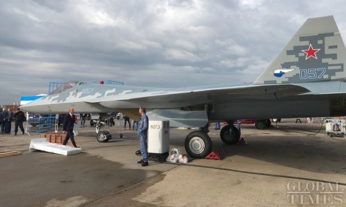 Russia's most advanced fighter jet Su-57 is on display