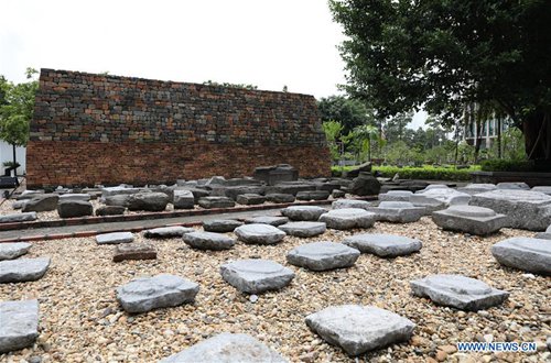 Photo taken on Aug. 23, 2019 shows ancient bricks and stone bases in the Imperial Citadel of Thang Long in Vietnam's capital Hanoi. The Imperial Citadel of Thang Long was built in the 11th century. Situated at the heart of Hanoi, the central sector of the Imperial Citadel of Thang Long was inscribed on the World Heritage List by the UNESCO in 2010. (Photo: Xinhua)