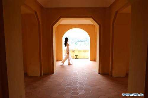 A woman wearing Vietnamese traditional costume walks in the Imperial Citadel of Thang Long in Vietnam's capital Hanoi, Aug. 23, 2019. The Imperial Citadel of Thang Long was built in the 11th century. Situated at the heart of Hanoi, the central sector of the Imperial Citadel of Thang Long was inscribed on the World Heritage List by the UNESCO in 2010. (Photo: Xinhua)