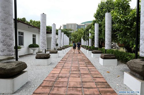 Two visitors walk in the Imperial Citadel of Thang Long in Vietnam's capital Hanoi, Aug. 23, 2019. The Imperial Citadel of Thang Long was built in the 11th century. Situated at the heart of Hanoi, the central sector of the Imperial Citadel of Thang Long was inscribed on the World Heritage List by the UNESCO in 2010. (Photo: Xinhua)