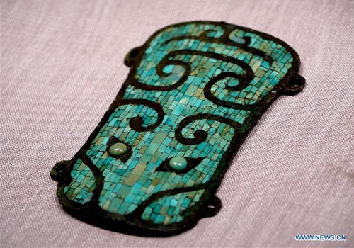 Photo taken on Aug. 27, 2019 shows a bronze plaque during an exhibition at Zhengzhou Museum in central China's Henan Province. The exhibition on major archaeological discoveries and research achievements in Henan in the past 70 years kicked off here on Tuesday, displaying 1,225 sets of exhibits. (Photo: Xinhua)