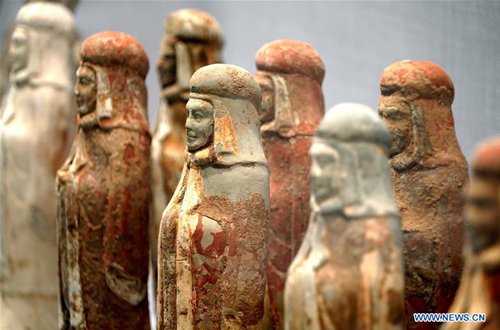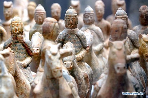 Photo taken on Aug. 27, 2019 shows pottery figurines during an exhibition at Zhengzhou Museum in central China's Henan Province. The exhibition on major archaeological discoveries and research achievements in Henan in the past 70 years kicked off here on Tuesday, displaying 1,225 sets of exhibits. (Photo: Xinhua)