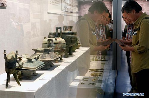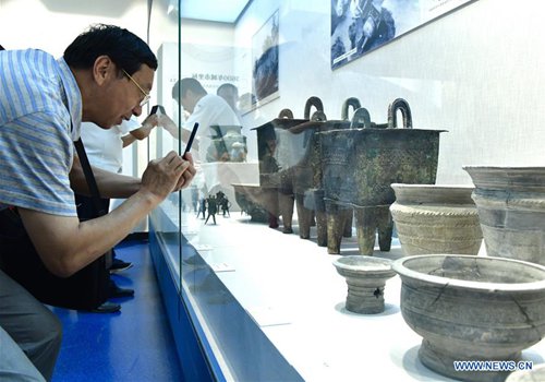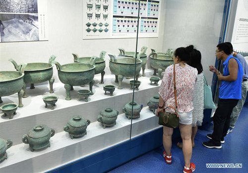 Visitors view exhibits during an exhibition at Zhengzhou Museum in central China's Henan Province, Aug. 27, 2019. The exhibition on major archaeological discoveries and research achievements in Henan in the past 70 years kicked off here on Tuesday, displaying 1,225 sets of exhibits.(Photo: Xinhua)
