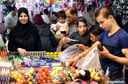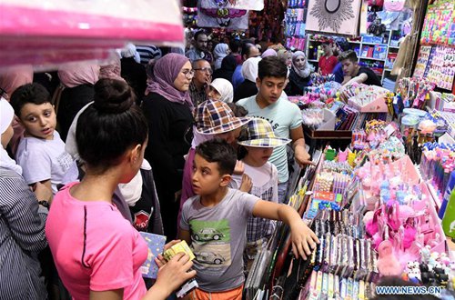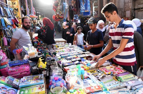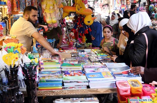 Syrians buy school supplies ahead of a new school year in Damascus, Syria, on Aug. 27, 2019. (Photo: Ammar Safarjalani/Xinhua)