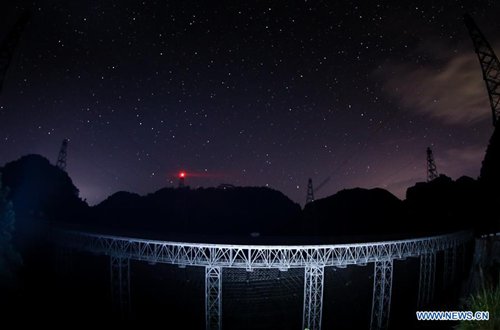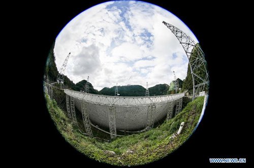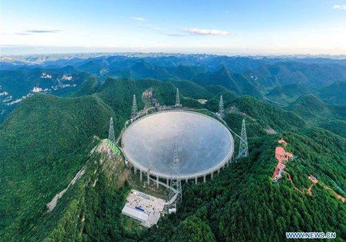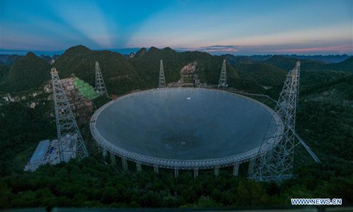 Photo taken on Aug. 27, 2019 shows China's Five-hundred-meter Aperture Spherical radio Telescope (FAST) in southwest China's Guizhou Province. China's FAST, the world's largest single-dish radio telescope, will greet the third anniversary of operation that began in September 2016. (Photo: Xinhua)