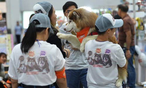 People visit the Pet Expo Thailand & Pet Expo Championship 2019 in Bangkok, Thailand, Aug. 29, 2019. The Pet Expo Thailand & Pet Expo Championship 2019 would be held at Bangkok International Trade & Exhibition Centre (BITEC) from Aug. 29 to Sept. 1. (Xinhua/Rachen Sageamsak)