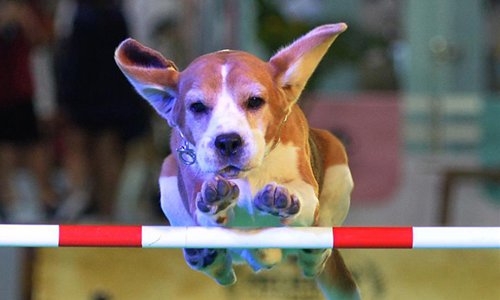 A dog takes part in high jump during the Pet Expo Thailand & Pet Expo Championship 2019 in Bangkok, Thailand, Aug. 29, 2019. The Pet Expo Thailand & Pet Expo Championship 2019 would be held at Bangkok International Trade & Exhibition Centre (BITEC) from Aug. 29 to Sept. 1. (Xinhua/Rachen Sageamsak)