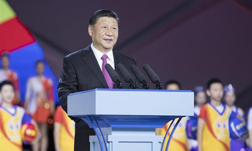 Chinese President Xi Jinping attends the opening ceremony of the FIBA Basketball World Cup 2019 at the National Aquatics Center, also known as the Water Cube, in Beijing, capital of China, Aug. 30, 2019. (Xinhua/Wang Ye)
