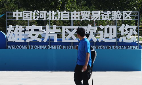 The China (Hebei) Pilot Free Trade Zone (FTZ) is officially launched in Xiongan, North China's Hebei Province on Friday. The FTZ spans four areas including the Xiongan Area, Zhengding area in Shijiazhuang, the Caofeidian area in Tangshan and the area around Beijing Daxing International Airport, covering a total of almost 120 square kilometers. The State Council, China's cabinet, announced a plan on August 26 to set up six new FTZs, with Hebei being one of them. Photo: VCG