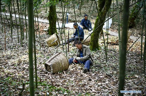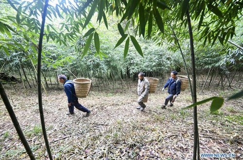 People collects bamboo shoots on the Jinfo Mountain in Nanchuan District of southwest China's Chongqing, Aug. 30, 2019. A lucky bamboo shoots collector on the Jinfo Mountain can harvest more than 6,000 bamboo shoots a day, which can increase his income by 7,000 to 10,000 yuan (about 1,398 US dollars) in the harvest season. According to local authorities, Nanchuan District has more than 100,000 mu (about 6,667 hectares) of bamboo shoot forests, which attract more than 10,000 people to collect bamboo shoots every year. (Photo: Xinhua)
