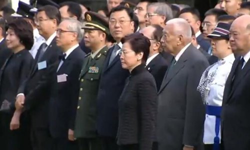 Hong Kong Chief Executive Carrie Lam and other regional government officials on Tuesday morning attended a ceremony to commemorate the Victory Day of the Chinese People's War of Resistance against Japanese Aggression (1931-1945).