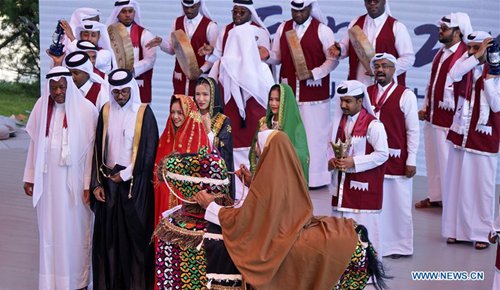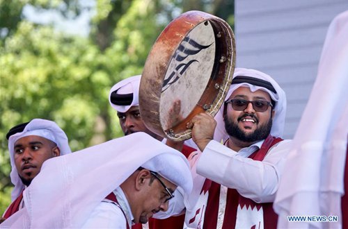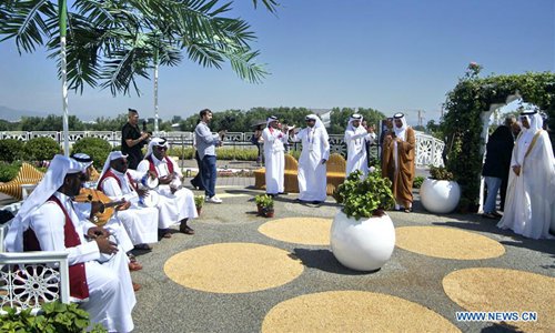 Artists from Qatar perform during the "Qatar Day" event at the Beijing International Horticultural Exhibition in Beijing, capital of China, Sept. 2, 2019. The expo held its "Qatar Day" event on Monday. (Photo: Xinhua)