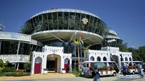 People visit the Qatar Garden during the "Qatar Day" event at the Beijing International Horticultural Exhibition in Beijing, capital of China, Sept. 2, 2019. The expo held its "Qatar Day" event on Monday. (Photo: Xinhua)