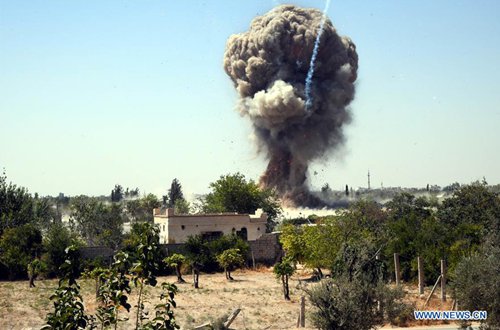 Smoke is seen after the army detonated bombs left by the rebels in agricultural areas in the Eastern Ghouta countryside of Damascus, Syria, on Sept. 3, 2019. The Syrian official media said that the army is defusing weapons left by the rebels in Eastern Ghouta. (Photo: Ammar Safarjalani/Xinhua)