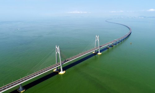 Aerial photo shows the Hong Kong-Zhuhai-Macao Bridge in south China. (Xinhua/Liang Xu)