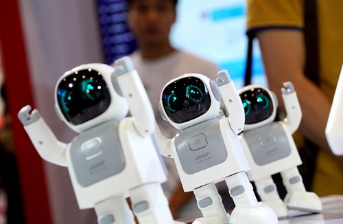 Robots dancing at the first China-ASEAN Artificial Intelligence Summit held in Nanning, capital of South China's Guangxi Zhuang Autonomous Region on Saturday. More than 100 firms displayed cutting-edge intelligent technology and appliances for people's daily lives in the 5G era, and attendees could have a try. Photo: VCG