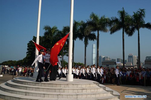 A national flag raising ceremony is held at the Golden Bauhinia Square in Hong Kong, south China, Sept. 8, 2019. (Photo: Xinhua)
