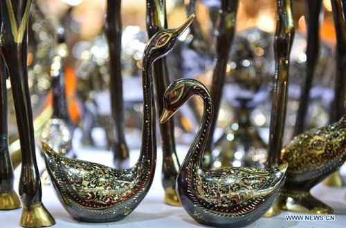 Photo taken on Sept. 5, 2019 shows copper decorations from a Pakistani exhibitor during the 4th China-Arab States Expo in Yinchuan, northwest China's Ningxia Hui Autonomous Region. Visitors have been dazzled by handicrafts from paricipating countries and regions at the expo. (Photo: Xinhua)