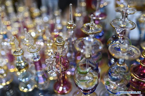Photo taken on Sept. 7, 2019 shows bottles from an Egyptian exhibitor during the 4th China-Arab States Expo in Yinchuan, northwest China's Ningxia Hui Autonomous Region. Visitors have been dazzled by handicrafts from paricipating countries and regions at the expo. (Photo: Xinhua)